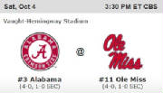 Poll, Ole Miss 11th in both – Both teams undefeated – Bama coming off a big win over an obviously struggling FLA team, and Ole Miss seemingly struggled against Memphis